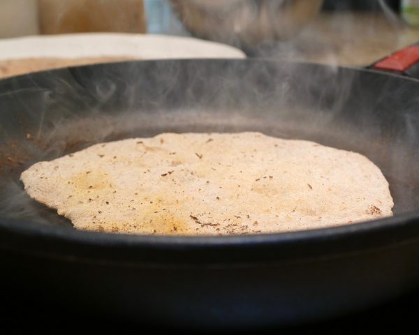 Panvicu rozpálime na maximum. Nasucho a naprudko ich opečieme. Pri opekaní sa na plackách tvoria pľuzgiere. Podávajú sa čerstvé ako príloha.